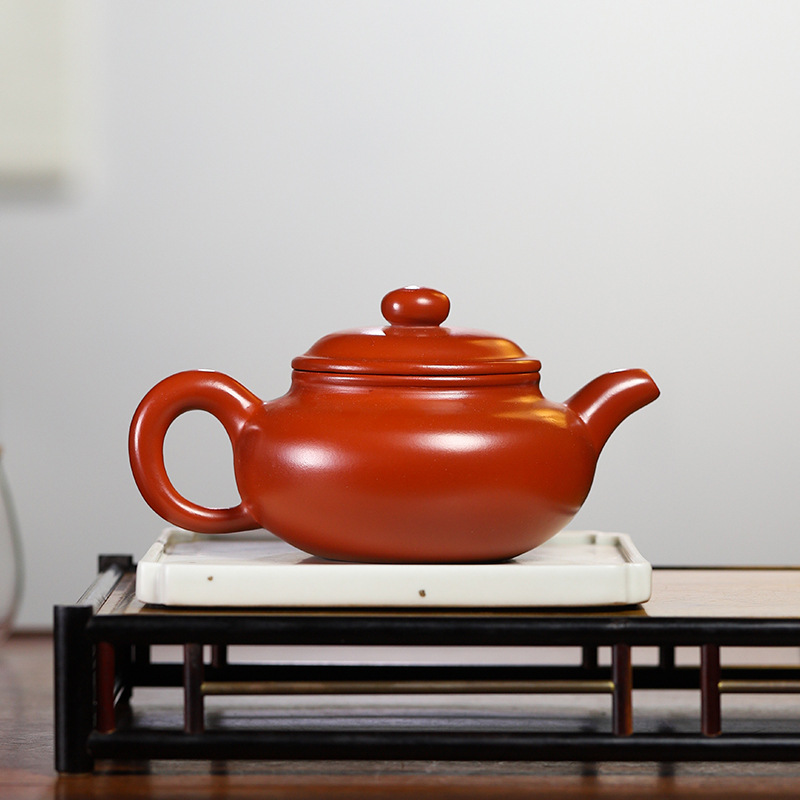 Ấm được tạo hình bụng trống, cổ cao, lớp bọc ngoài trơn tuột, nắp ấm và đường viền mép ấm ăn khớp nghiêm mật với nhau. Hình thành đường nét tròn đầy đặn, biên núm đanh thép, đầy sức sống. Dáng ấm thăng bằng, các đường cong vô cùng tự nhiên.