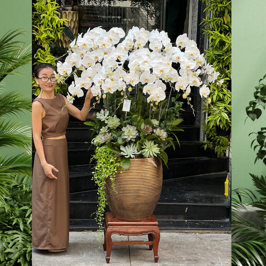 Bình Hoa Lan Hồ Điệp Trắng Siêu To Mix Sen Đá – Món Quà Mừng Thăng Chức Cao Cấp, Ý Nghĩa