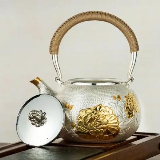 Bộ Ấm Chén Bạc Tây Thi Hoa Mẫu Đơn 11 Món, Bạc Nguyên Chất 99,99%