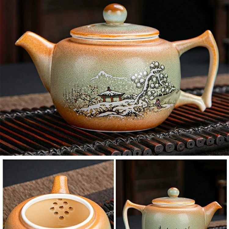 – Bộ ấm chén tráng men sang trọng lịch sự họa tiết Hoa Tuyết