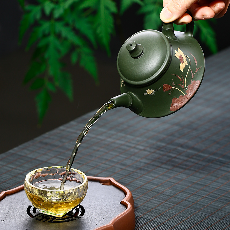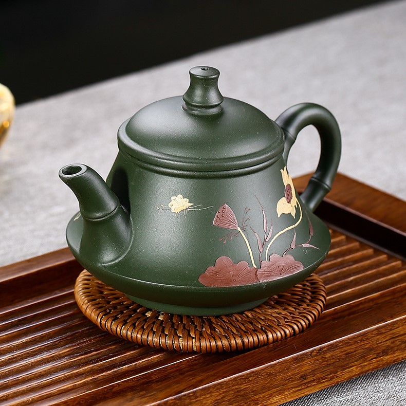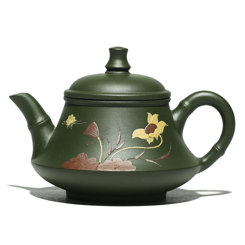 Bộ Ấm Chén Lục Sa Kim Liên Quân Trúc, Nguyên Khoáng, Thủ Công 230ml