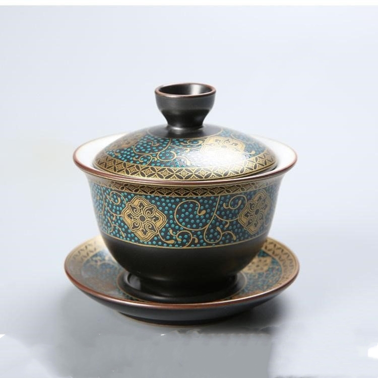 Bộ ấm chén pha trà 10 món xanh vàng đen (Sản phẩm 100% như hình ảnh)