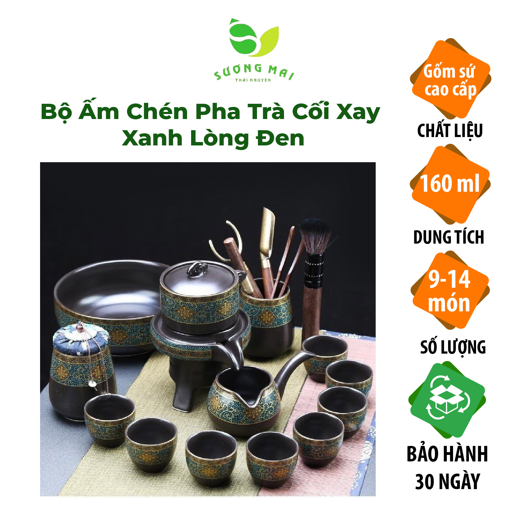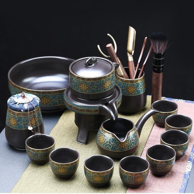 Bộ ấm chén pha trà cối xay 15 món SM007 xanh lòng đen