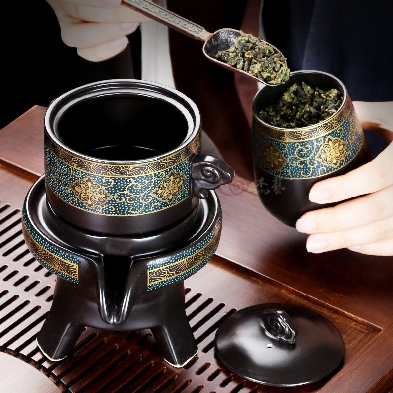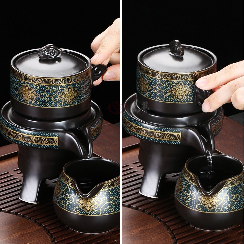 Hình cối xay, có thể quay để giữ nước và chảy nước, nước trà qua bộ lọc, xử lý, nước trà rất trong và hương trà rất thơm.
