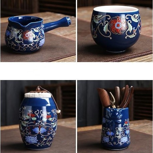 Bộ ấm chén pha trà cối xay 9 món SM014 Hoa Sen Đỏ