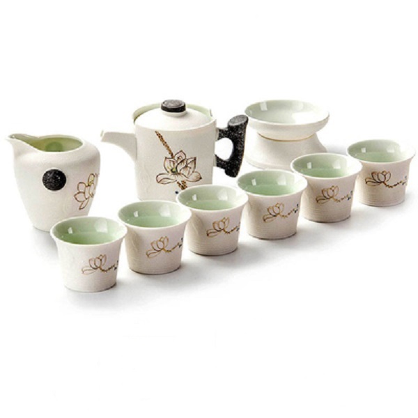 Với đường nét gốm tinh xảo sáng bóng, rất nhẵn mịn, màu trắng sáng trong tinh tế đẳng cấp được vẽ họa tiết hoa sen màu vang sang trọng