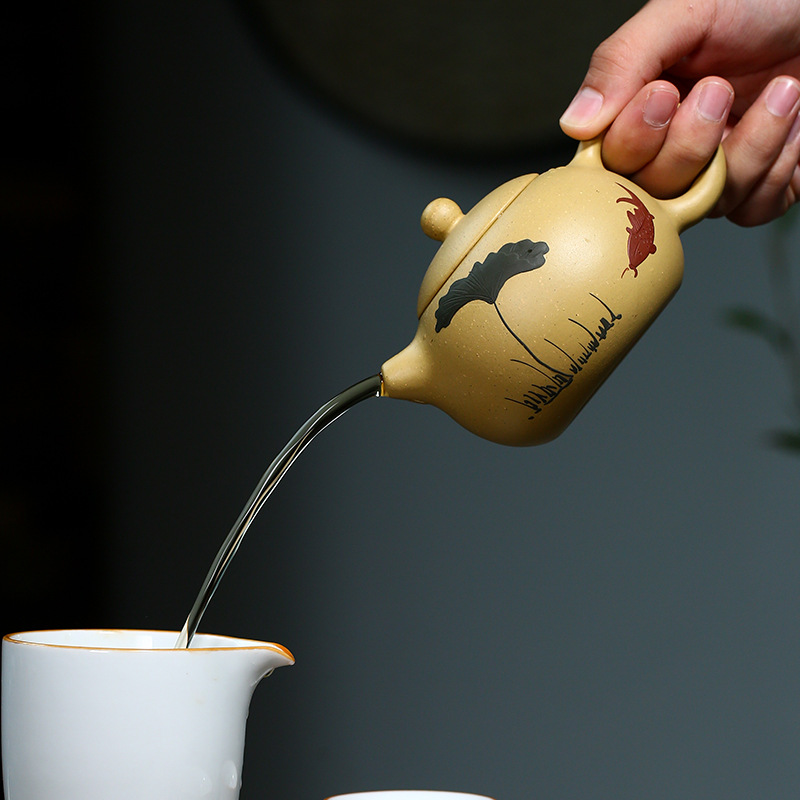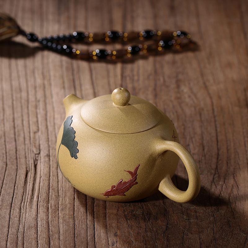 Bộ Ấm Chén Tây Thi Đoàn Nê Sen Cá, Đoàn Nê Nguyên Khoáng, Thủ Công 220ml