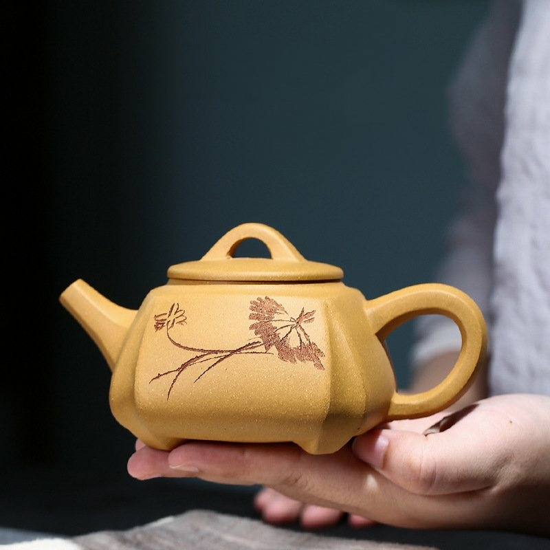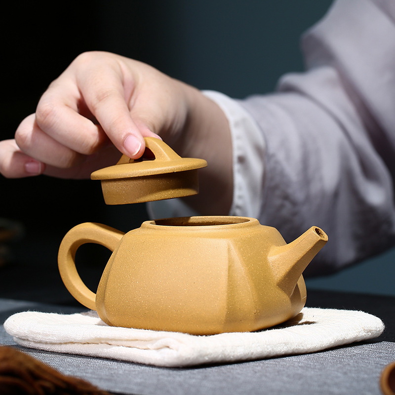 Bộ Ấm Chén Tứ Phương Đoàn Sa, Nguyên Khoáng, Thủ Công 270ml