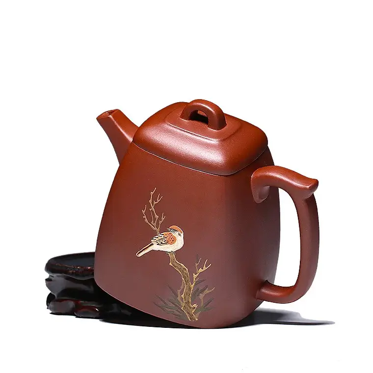 – Dáng ấm Hán Phương có hình trụ vuông 4 mặt đều nhau dáng ấm ngạo nghễ, vòi ấm ngắn vị trí cao cho dòng chảy thẳng, nắp ấm ôm khít vào thân ấm, núm ấm thấp, thân ấm được hoạ Con Chim đang đậu trên cành tao nhã nhẹ nhàng.