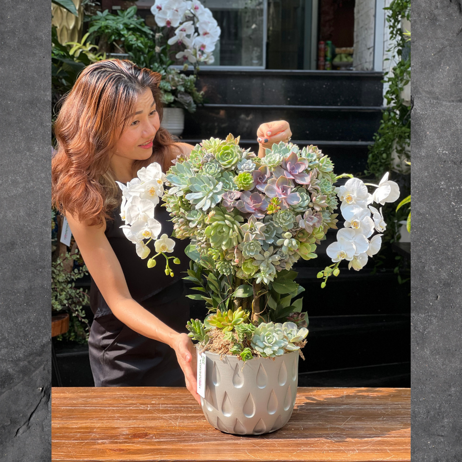 Chậu Hoa Sen Đá Trái Tim Mix Lan Mini Trắng: Món Quà Sinh Nhật Vợ Đầy Ý Nghĩa