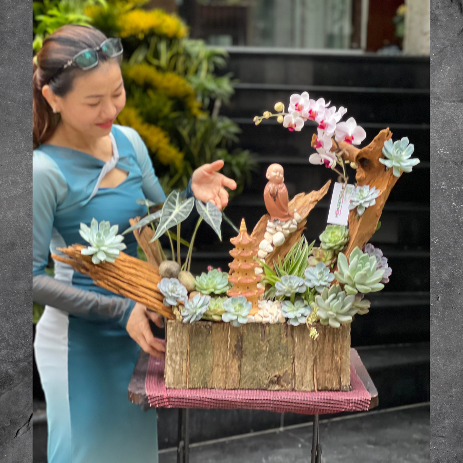 Chậu Lan Hồ Điệp Gỗ Lũa Để Bàn Mix Sen Đá – Tiểu Cảnh Hồ Điệp Mini Độc Đáo