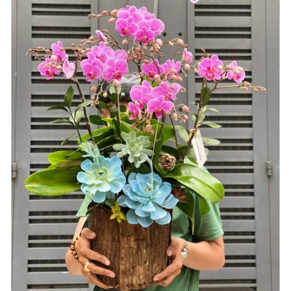 Chậu Lan Hồ Điệp Hồng Mini Mix Sen Đá Để Bàn Cực Xinh