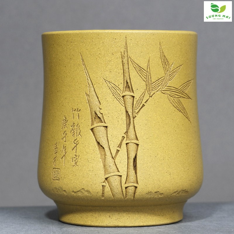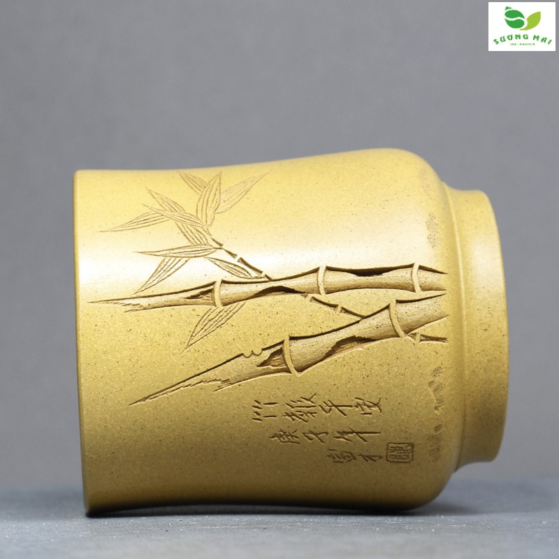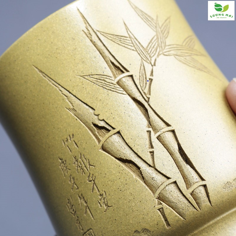 - Khắc hoạ bên ấm là hình ảnh cây Trúc khắc rất đẹp, tạo dáng mạnh mẽ và ý nghĩa trúc quân tử hiên ngang chính trực