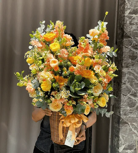Giỏ Hoa Chúc Mừng Khai Trương Màu Vàng Cam Chủ Đạo
