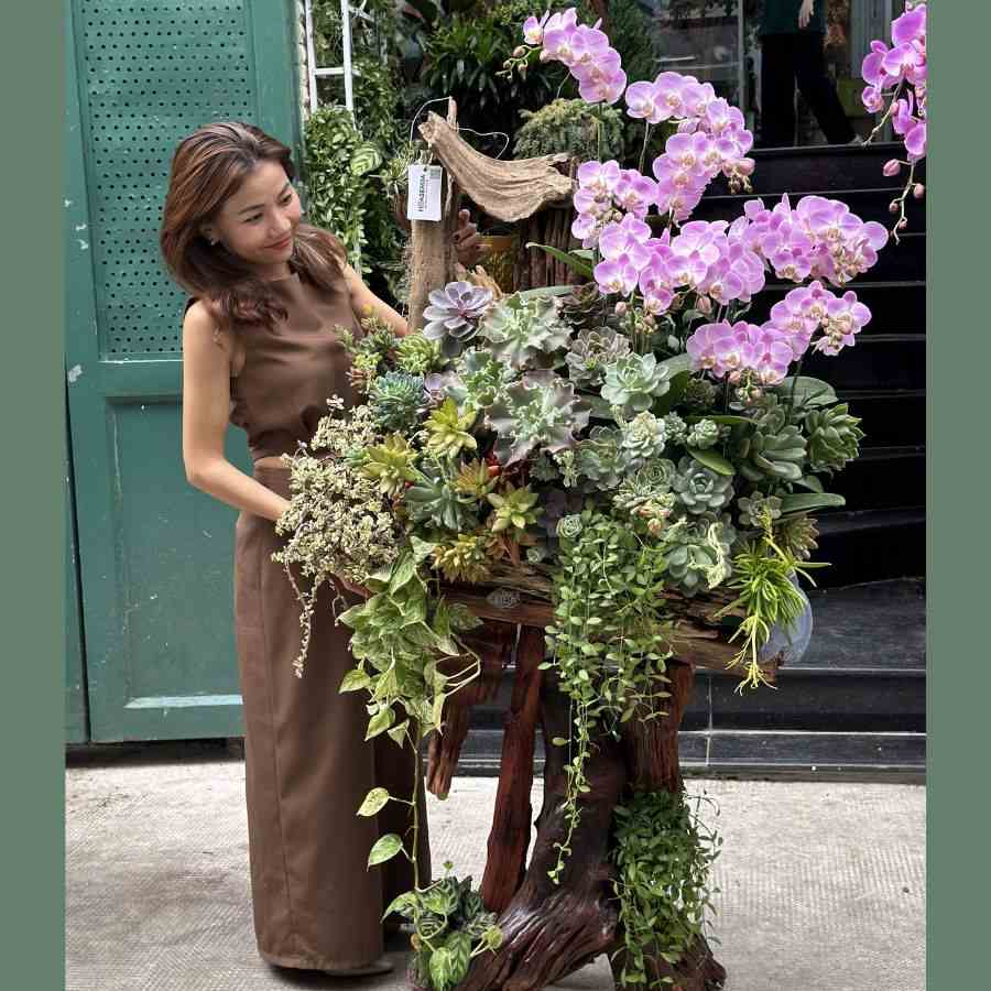 Gỗ Lũa Sen Đá Mix Lan Hồ Điệp – Quà Tặng Khách Vip