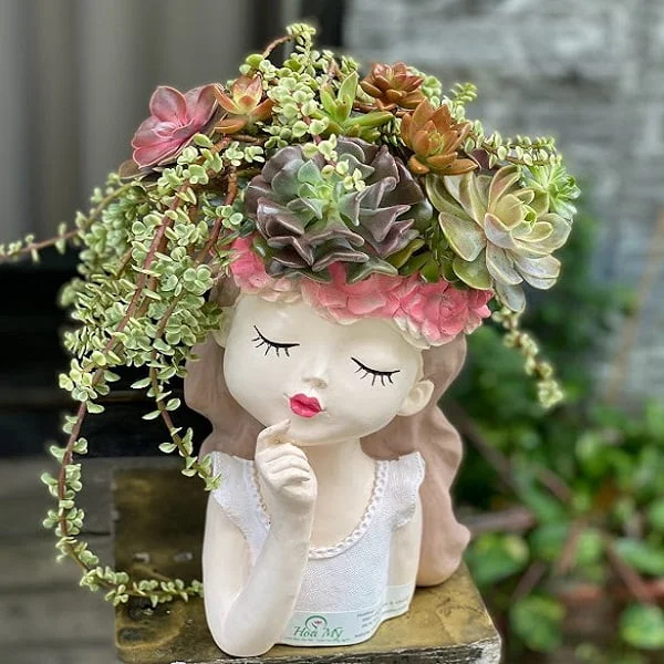 Hoa Tặng Mẹ: Bình Hoa Sen Đá Cô Gái