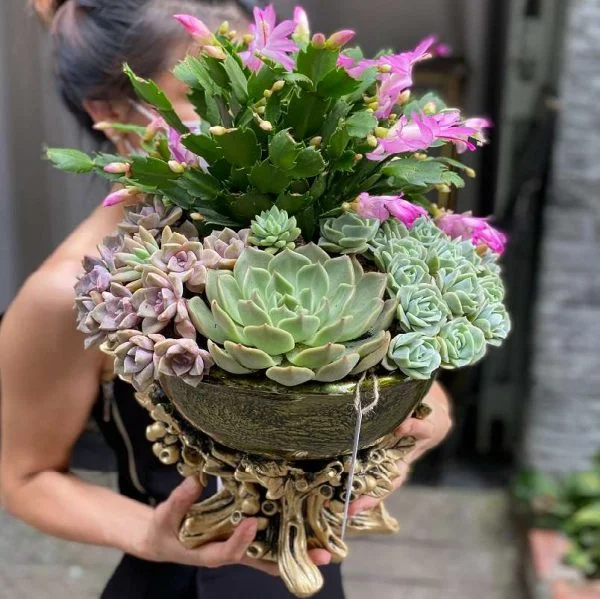 Hoa Tặng Ngày Tết- Hoa Sen Đá Decor Bình Cổ Cao Cấp