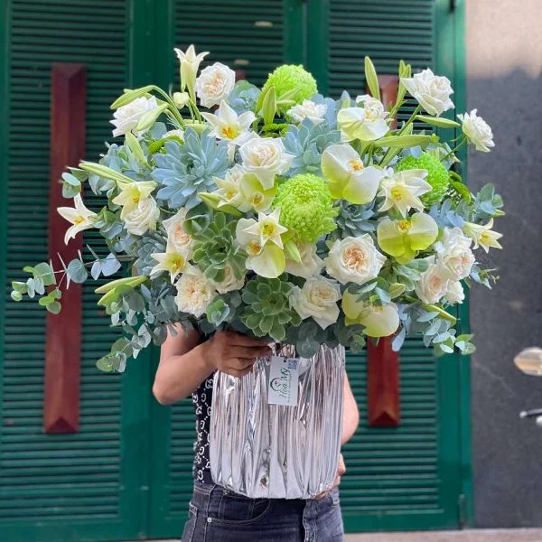 Lẵng Hoa Đẹp Mừng Khai Trương Màu Xanh Lá Cây