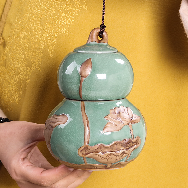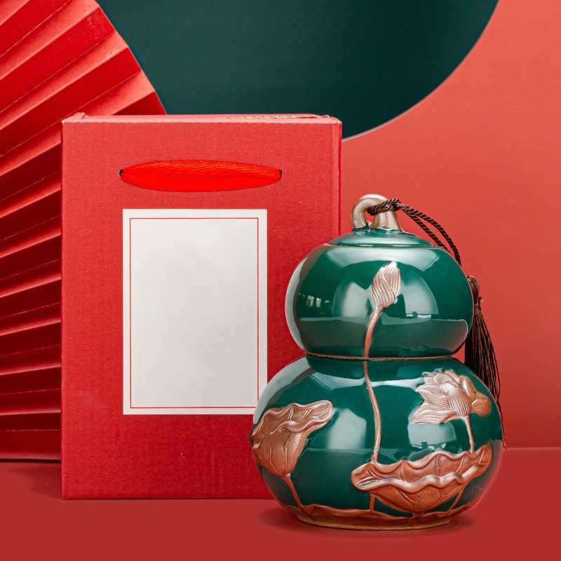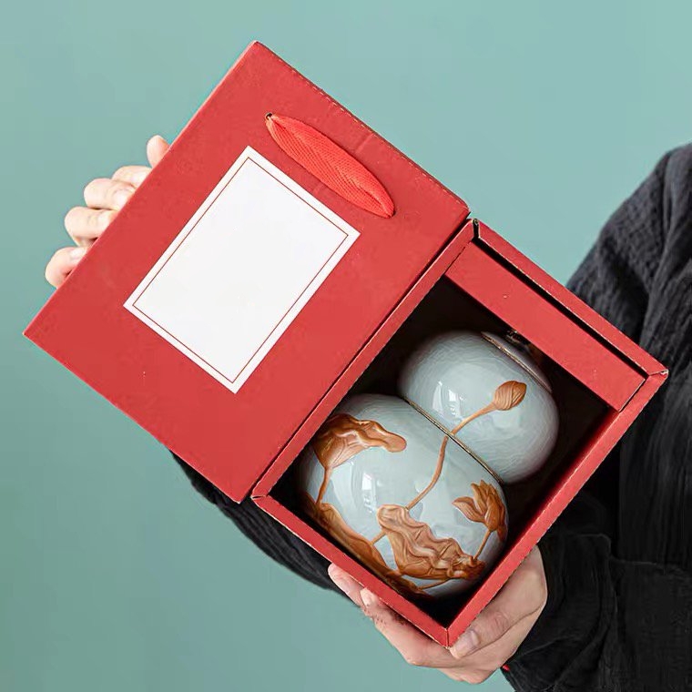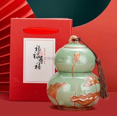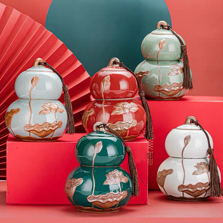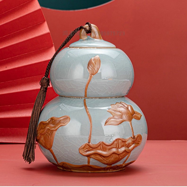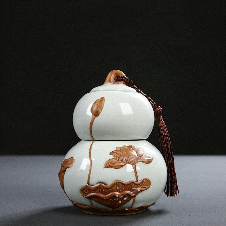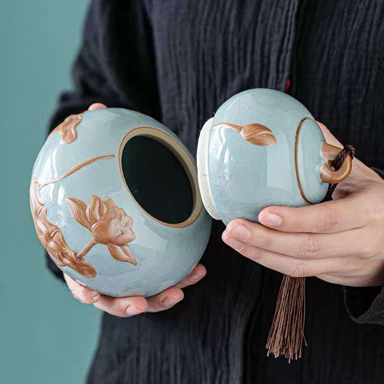 Lọ Gốm Đựng Trà Họa Tiết Hoa Sen, Sang Trọng, Đẳng Cấp 970ml
