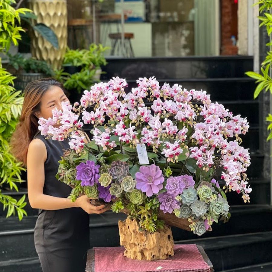 Lũa Lan Hồ Điệp Để Bàn Mix Sen Đá Tím – Quà Tặng Sếp Nữ Sinh Nhật Ý Nghĩa, Hoa Khai Trương Hiện Đại