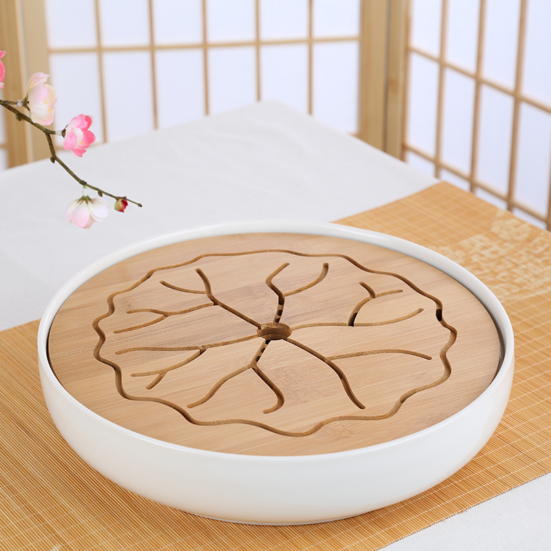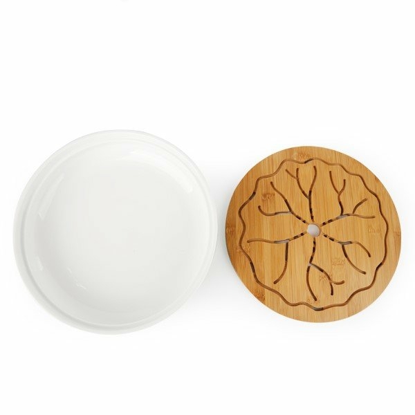 Chất liệu sứ trắng làm đế rất sang trọng và bền đẹp, mặt tre tiện dụng và tinh tế