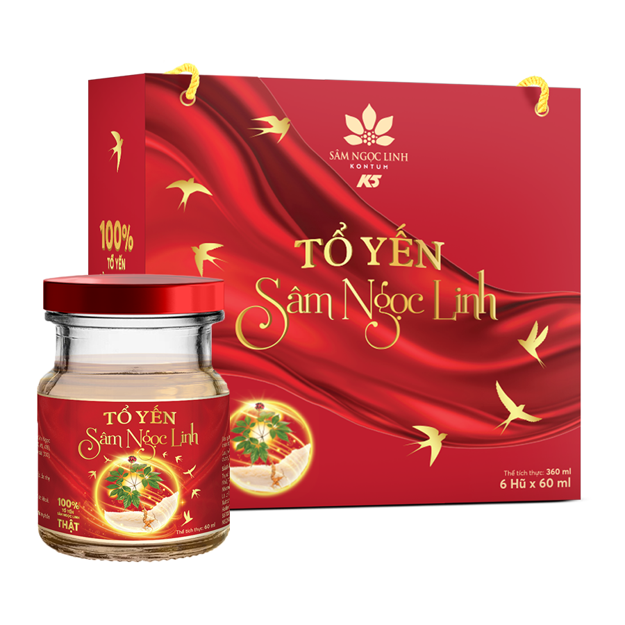 Nước, đường phèn, tổ yến tươi (10%), Cao Sâm Ngọc Linh (125mg/l), Chất ổn định (327, 406, 412, 415, 418), chất bảo quản (202), chất điều chỉnh độ axit (330), hương liệu tồng hợp.