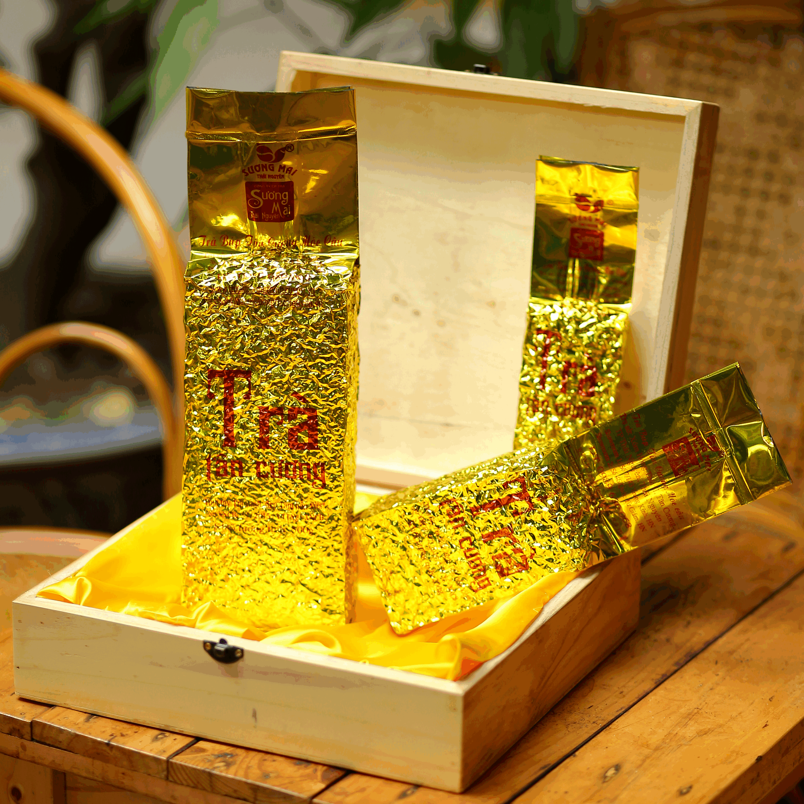 Trà Búp Móc Câu Sương Mai Thái Nguyên gói 200g, ngoài ra còn có trọng lượng khác nữa.