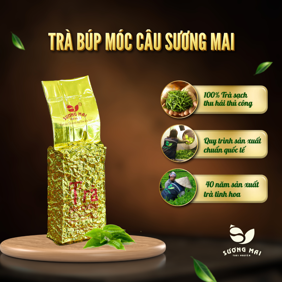Trà Búp Móc Câu Sương Mai Thái Nguyên được chăm sóc theo quy trình khép kín từ trồng, chăm sóc và thu hoạch đến sản xuất. Búp chè sau khi được hái sẽ được sao ngay trong ngày đảm bảo lá chè còn tươi không bị héo. Sau đó đưa vào sao theo quy trình kỹ thuật khép kín để được những búp chè chất lượng cao, mùi hương thơm, nước trà đậm đà.
