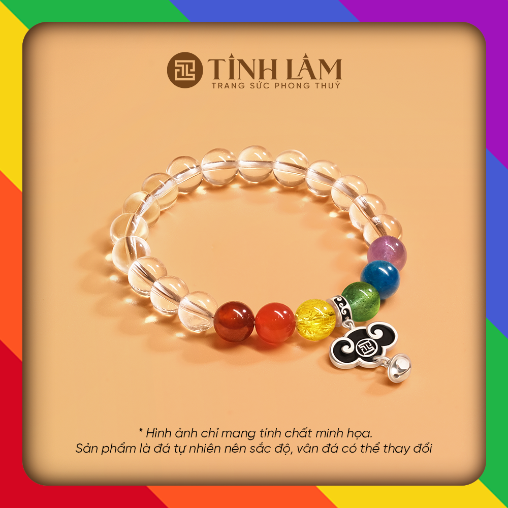 VÒNG TAY THẠCH ANH TRẮNG PHỐI LỤC SẮC