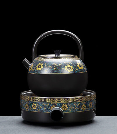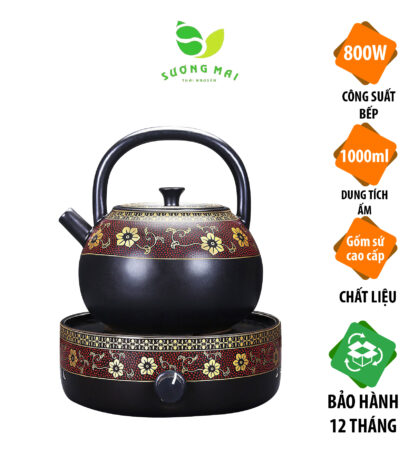 Bộ Ấm Đun Nước Gốm Sứ Cao Cấp Và Bếp Hồng Ngoại Hoa Cẩm Đẹp, Sang Trọng, Đẳng Cấp
