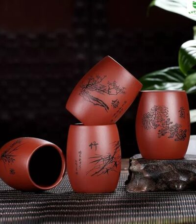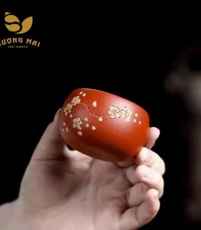 Chén Uống Trà Tử Sa Nguyên Khoáng, Thủ Công, Hoa Mẫu Đơn 60ml
