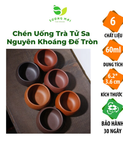 Chén Uống Trà Tử Sa Nguyên Khoáng Thủ Công Đế Tròn 60ml