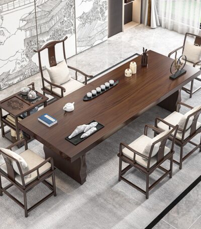 Bộ Bàn Ghế Uống Trà VIP Phòng Khách Gỗ Sồi Chiều Dài 2m, 6 Ghế